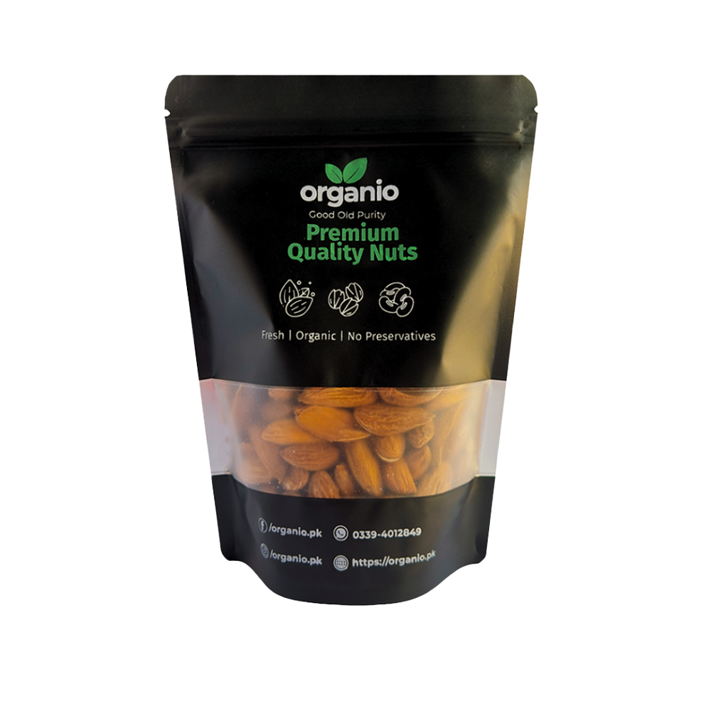 Our Khaira Deeni almonds come in resealable, airtight pouches that protect their freshness and crispness. Free from preservatives and additives, they maintain their premium quality and are ready to eat right out of the bag.